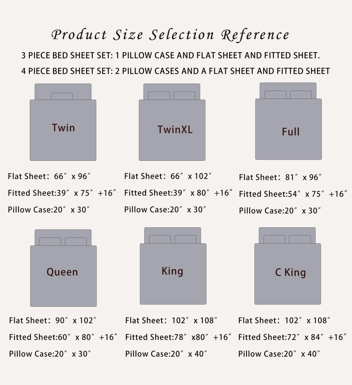 | Size | Twin, Twin XL, Full, Queen, King, California |